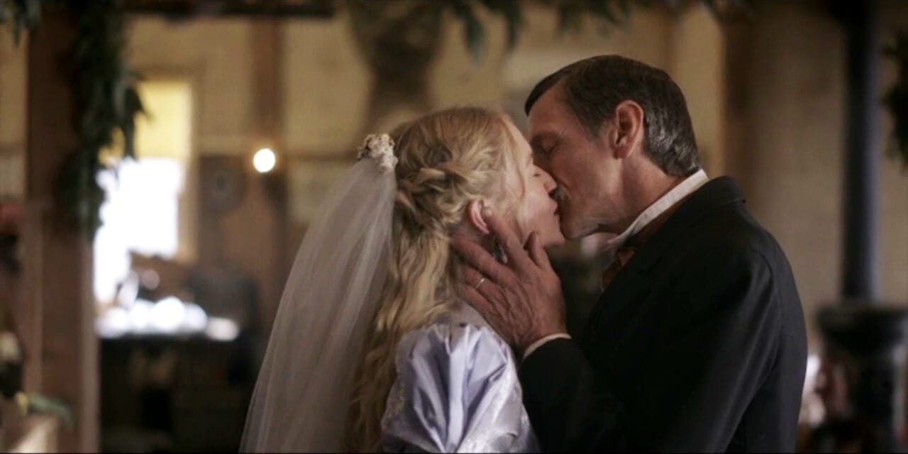 Riding into Deadwood again is like sitting down with old friends and also like opening the pages again of a beloved book, the spine broken in, the print worn with finger-tracings and the grooves of the imagination. Watching the movie has the feeling of ritual, as when the townfolk gather around the grave of the beloved Charlie Utter (Dayton Callie), tossing dirt upon his coffin, or when they stand up to witness Trixie’s wedding to hardware-store-owner-with-a-heart-of-gold Sol Star (John Hawkes). Memories—sometimes in flashbacks to the show, sometimes in Milch’s beautiful words—weave past sacrifices together with present action and present sacrifice, so meaning inheres in each smile, each “fuck”, each bloody beating. Even the evil magnate with no heart to speak of, George Hearst (Gerald McRaney) has his place in the ceremony, for how can there be solidarity without threat, virtue without a vice to stick it in?