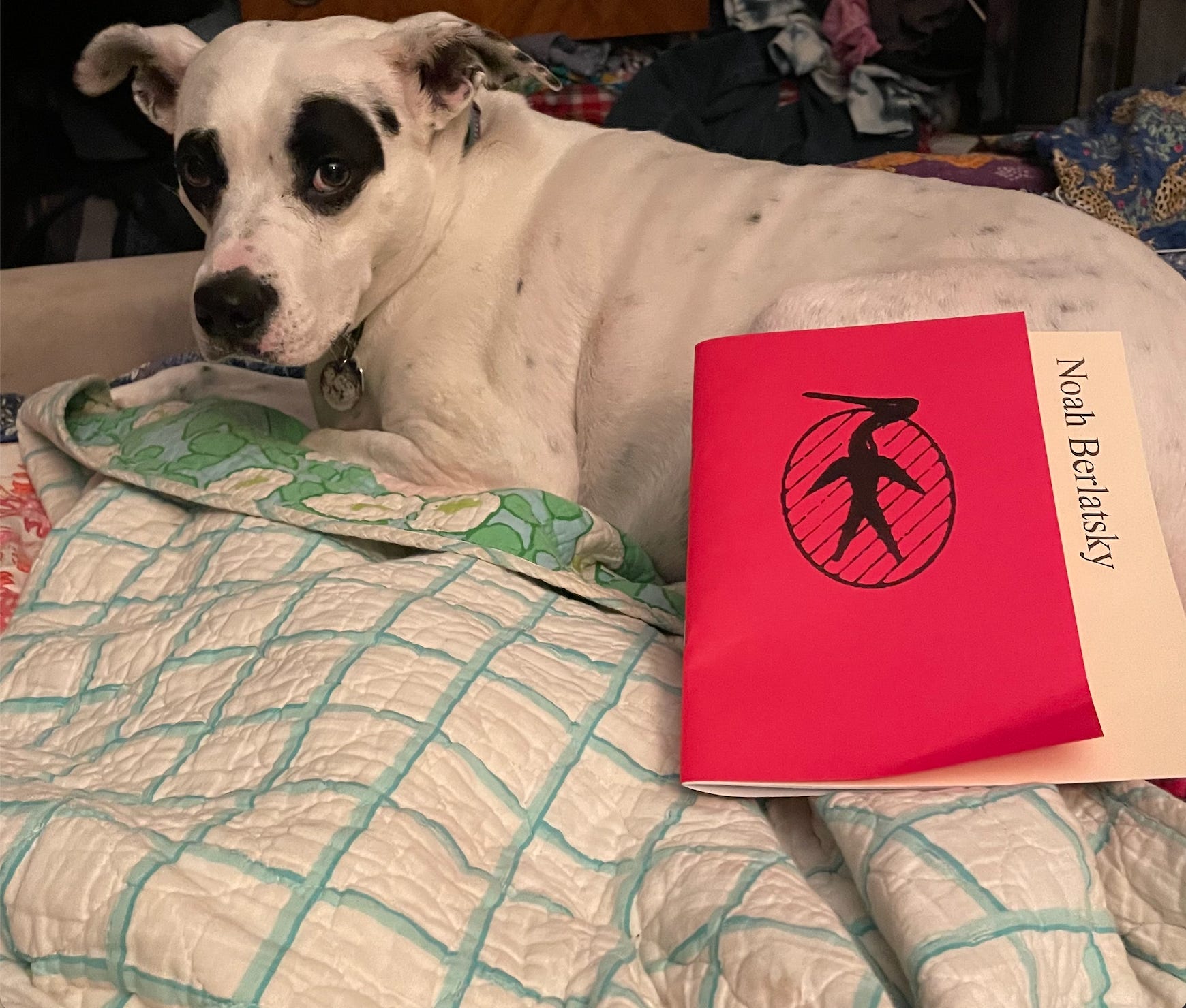 This is a partial list of poetry publications/readings/interviews by Noah Berlatsky (that’s me!) It will be updated sporadically. The picture is of Goose preparing to read my chapbook.