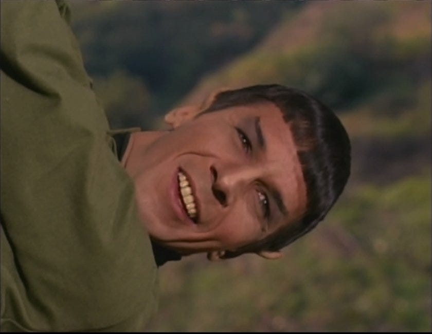 That attractiveness, though, can also seem a little disturbing. If Spock is a kind of ideal, that ideal seems to be masculinity as repression. There's something appealing, Spock seems to say, about a man so divorced from his own emotions that he has to be shot in the face with alien flower spores in order to be able to say, "I love you."