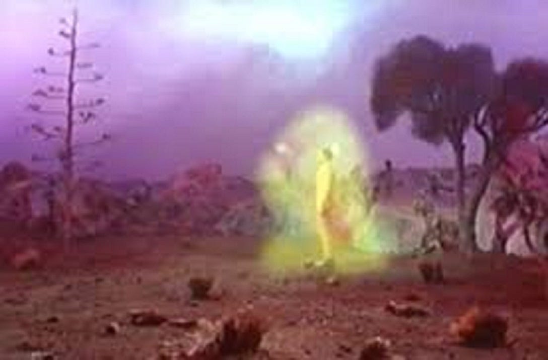 “The idea of male and female are universal constants,” Captain Kirk (William Shatner) asserts glibly in “Metamorphosis.” The episode is less confident than he is, though. Gene L. Coon’s script hints at the possibility of different kinds of bodies and different kinds of love which don’t fit easily into the categories of 60s gender expectations. Rather than seeing those possibilities as liberating or exciting, though, the episode tries to figure out how to contain them. Alien love is a threat which has to be funneled into familiar channels to keep men, women, and the universe in their respective places.